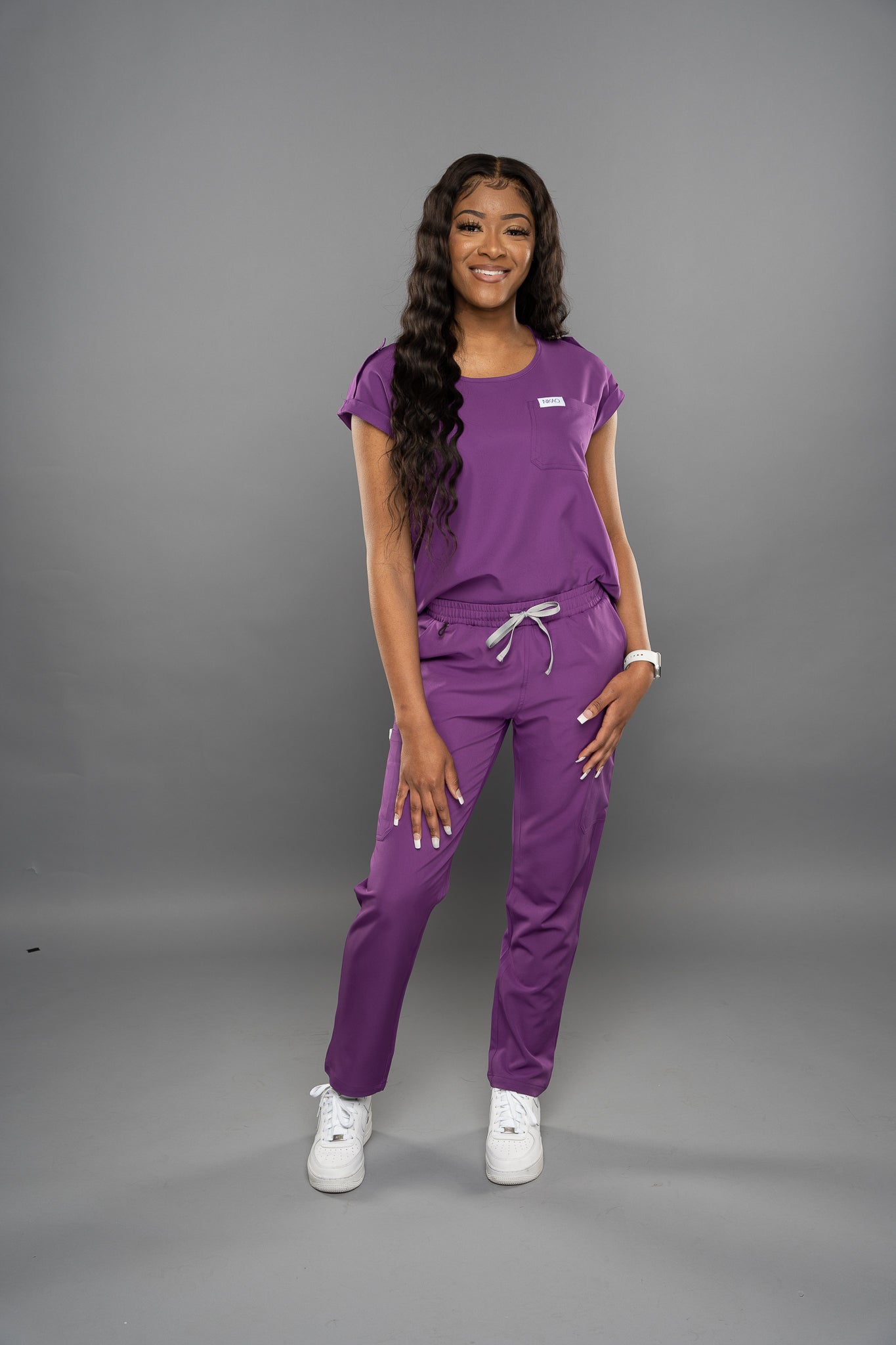 Scrub Set features a Round Neck Neckline